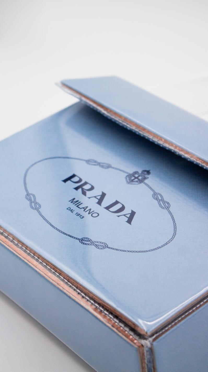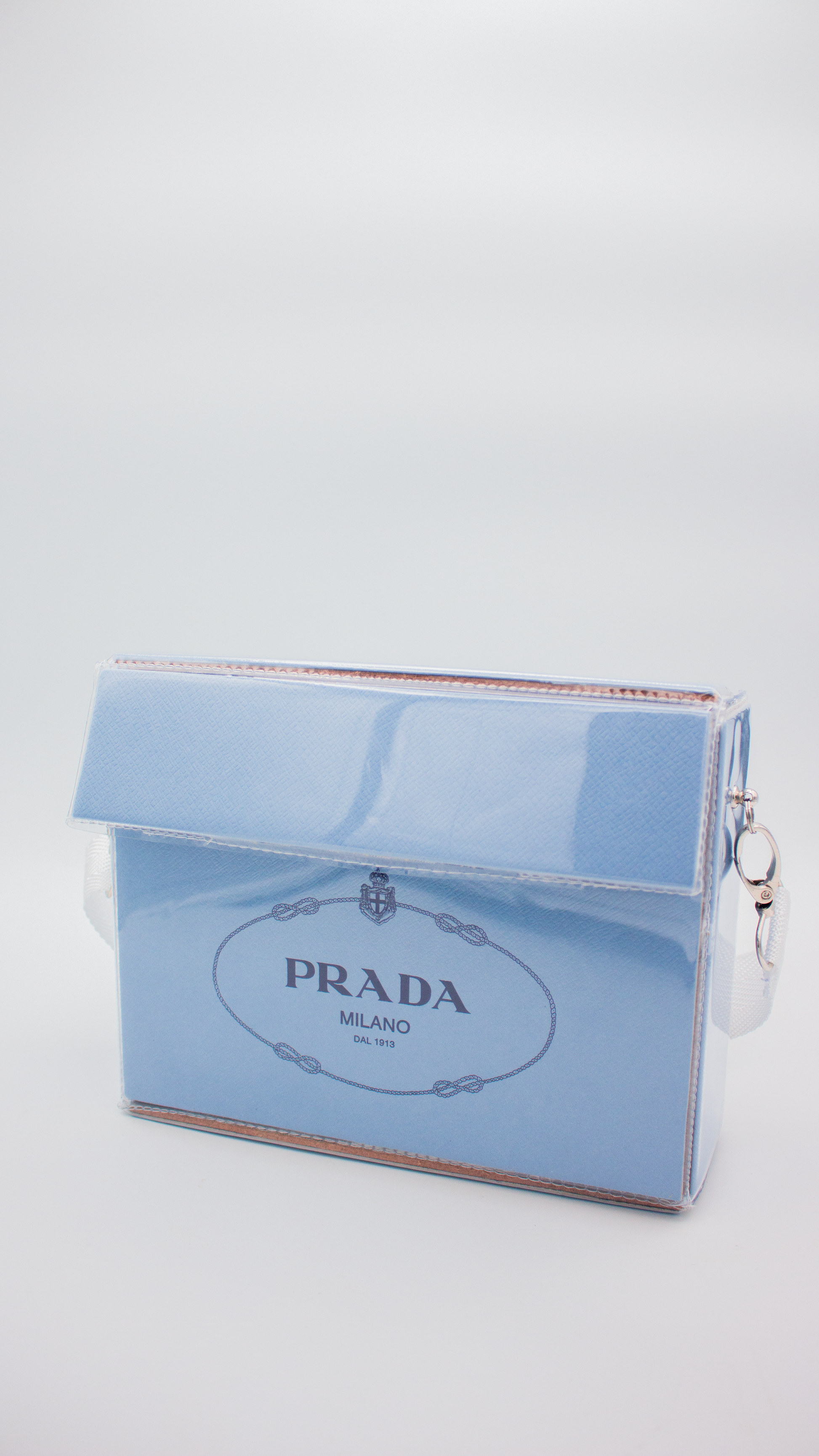 Borsa Prada realizzata con la scatola prada milano, rinforzata con legno spesso 3mm, interno pelle nera.